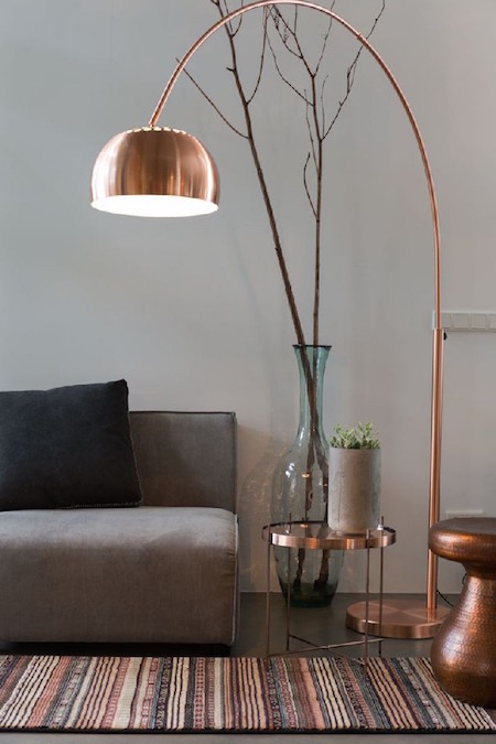 14-Top-50-modern-floor-lamps-metallic-copper-floor-lamp This contemporary floor lamp is so different of all the designs we have seen so far. Perfect for your mid century modern living room design.